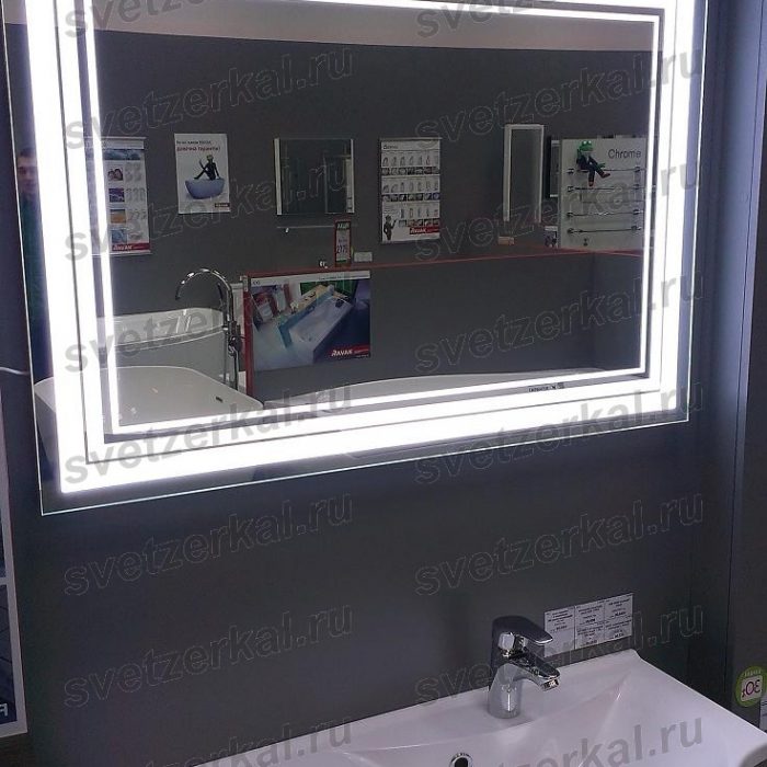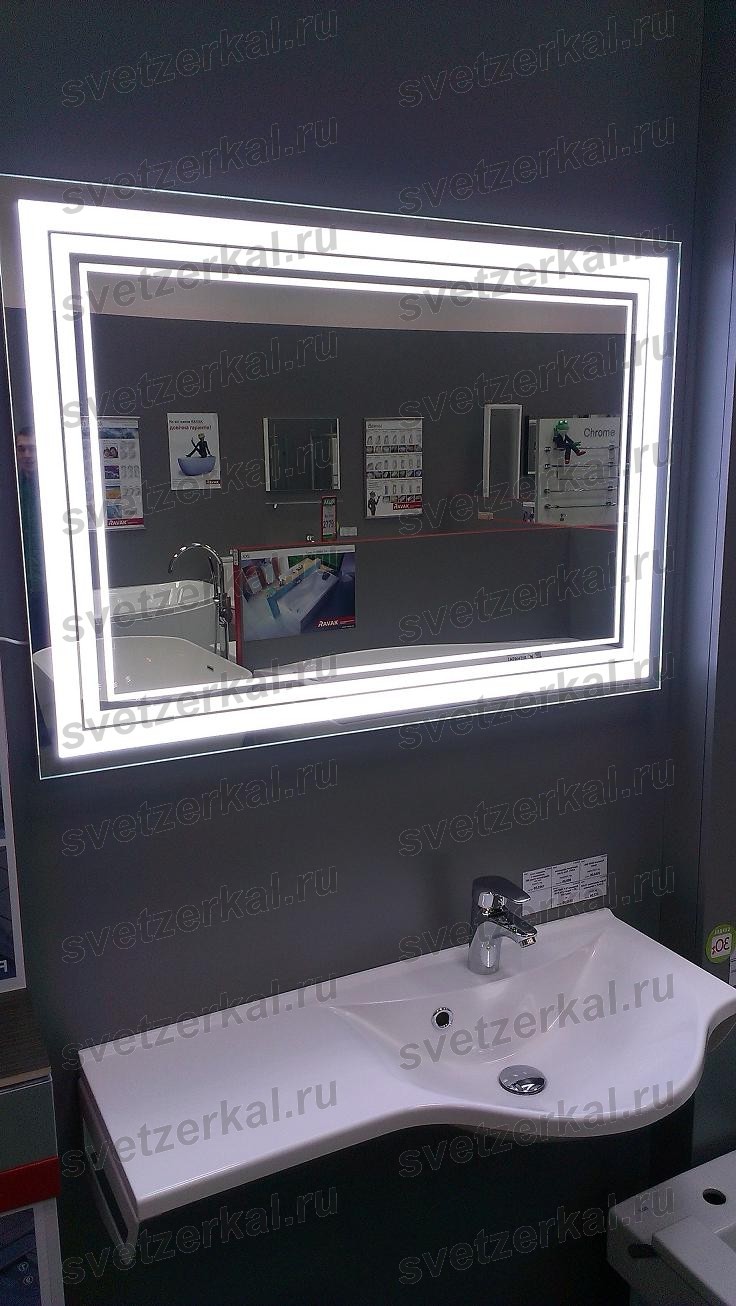 При ширине зеркала 90-100 см рекомендуется располагать включатель на боковой части торца. Если ширина изделия превышает 100 см, то наиболее удобным будет включатель, размещенный на нижней торцевой части.