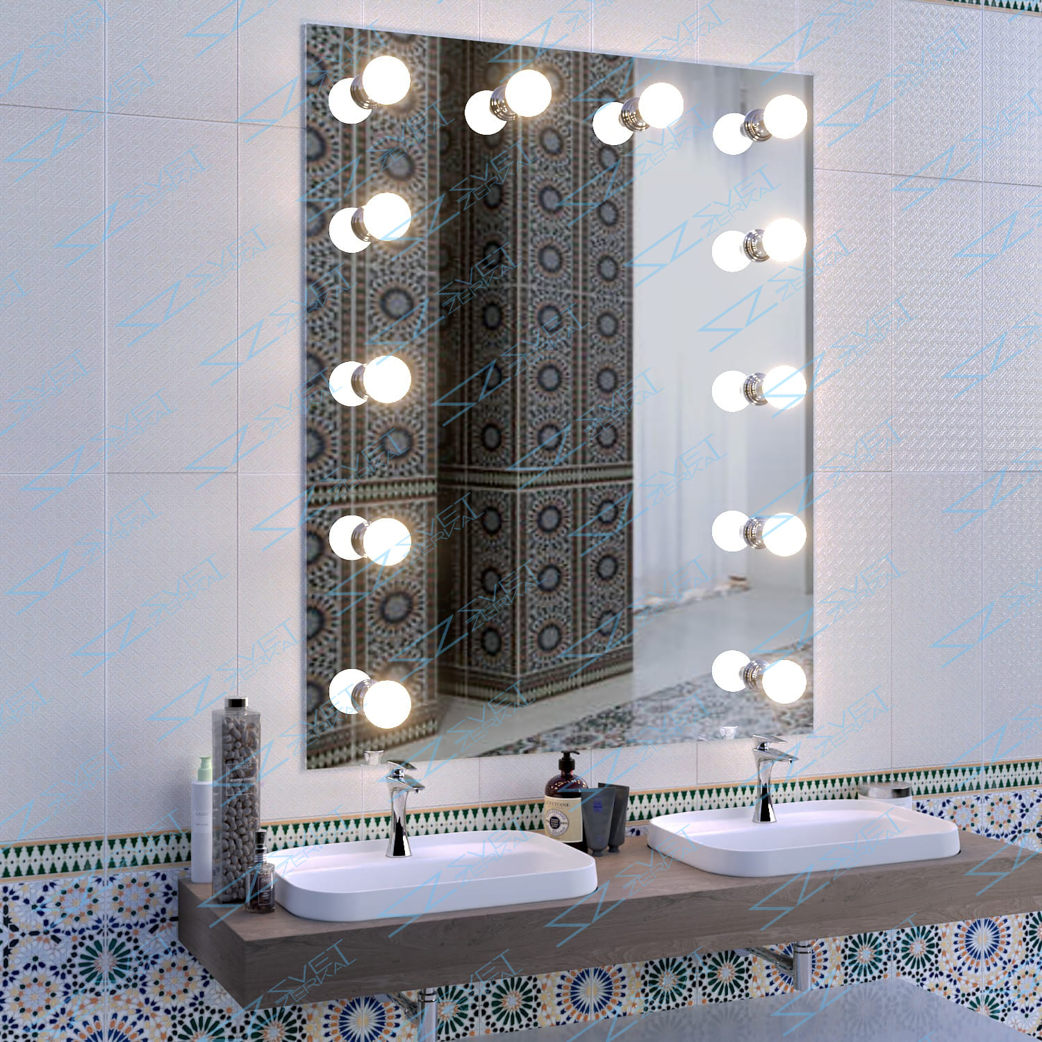 При оснащении зеркал дополнительными опциями компания SVETZERKAL использует косметические линзы проверенного немецкого бренда только с трёхкратным увеличением, поскольку другие степени кратности не обеспечат требуемый эффект.